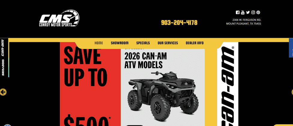 CMS is a key ATV dealer for hunters in East Texas, including the Mount Pleasant, Texarkana and surrounding areas. Specializing in top brands, including Can-Am and Yamaha, CMS is well-known for its advanced hunting and utility capabilities and know-how. The dealership’s focus on customer needs means it strives to offer both new and preowned options, ensuring that you can find the right vehicle suitable for your budget.
